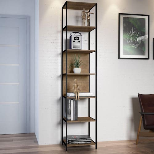 A Estante para Livros Multiuso Steel Quadra Industrial 6 Prateleiras é confeccionada em madeira ecologicamente correta, móvel composto de MDP BP 15mm e estrutura metálica de tubo 15x15mm com acabamento em pintura epóxi fosco, materiais esses que trazem resistência e durabilidade ao produto. Inspirado no Estilo Industrial proporciona um ambiente com um toque totalmente diferenciado e moderno. Com um conceito aberto e visual outilizado as estantes da Steel Quadra, podem compor um ambiente sozinho ou então em conjunto, unem a simplicidade da madeira e metal, gerando rusticidade e inovação.. Combinando outras opções de estantes da Steel Quadra você pode criar diversos ambientes, contar com mais organização e praticidade para sua sala, quarto, closet, escritório entre outros.. Medidas (AxLxP):211,5x45x36,5cm Produto Montado: Sim Acabamento da Prateleira: BP Acabamento dos Pés: Pintura Altura dos Pés: 0 cm Altura Máxima dos Pés: 0.0000 Ambiente Principal: Sala de Estar codigo_ean: 7899652927000 Complexidade da Montagem: Baixa: pode ser montado por uma pessoa sozinha Cor: Vermont/Preto Cor do Produto: Vermont/Preto Cor Interna: Vermont Escala de Brilho: Fosco Escala de Brilho da Prateleira: Fosco Informações Complementares: As imagens são ilustrativas e as cores podem sofrer variações de tonalidade, conforme o ajuste de configuração do monitor, os objetos decorativos não estão inclusos. Itens Inclusos: 1 Estante, Kit ferragens, manual de montagem. Linha ou Coleção: Steel Quadra Manual de Montagem e Instalação: https://product-hub-prd.madeiramadeira.com.br/343981/documents/d0db3741-c429-43b3-b14d-06251e64f1e8d0a29d9181360343981manual1.pdf Material da Prateleira: MDP Material dos Pés: Aço Material Principal: MDP Necessita Montagem: Sim Origem do Produto: Nacional Peso: 16,5 kg Peso Máximo por Prateleira: 5 kg Possui iluminação: Não Possui Pés: 04 Possui Portas: Não Possui Prateleiras: Sim Possui Rodízio: Não Possui Vidro: Não Recomendações de Uso, Manutenção e Limpeza: Limpar utilizando apenas pano umedecido com água, nunca utilizar produtos químicos ou abrasivos, pois estes danificam o revestimento do móvel. Sapatas Niveladoras: Não Sistema de Montagem: Parafusos, pregos e cavilhas Suporta Até (kg): 35 kg