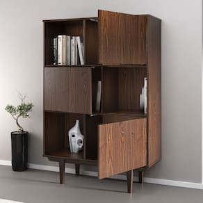 Com design assimétrico e estrutura marcada por linhas limpas, a Estante 3 Portas e 3 Nichos Cor Imbuia Madeira Maciça de pinus Simona imprime sofisticação e leveza ao ambiente. Inspirada no estilo escandinavo, ela combina nichos abertos e Portas fechadas em uma composição funcional, perfeita para organizar com elegância.