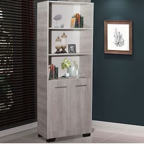 Organização Eficiente: Com quatro prateleiras espaçosas e duas portas, você terá amplo espaço para organizar seus livros, coleções e objetos decorativos de maneira prática e organizada.