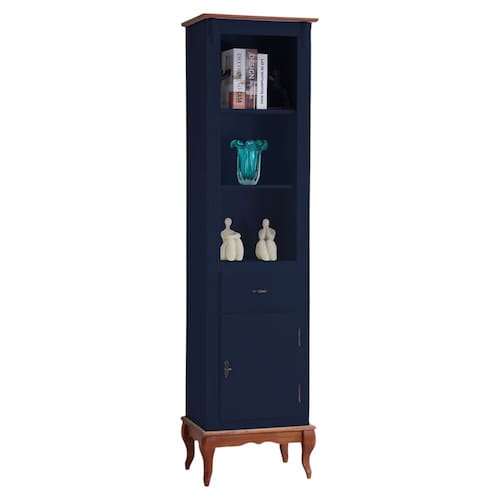 Transforme seu ambiente com a sofisticação atemporal da Estante de Madeira 60104. Produzida em Madeira Maciça para tons amadeirado em verniz e MDF nos tons coloridos com acabamento laca, esta peça combina durabilidade e charme clássico. Seu design elegante inclui 1 gaveta espaçosa equipadas com corrediças metálicas telescópicas, garantindo um deslizamento suave e resistência ao uso diário, 1 porta e 2 prateleiras para exibir seus itens decorativos.