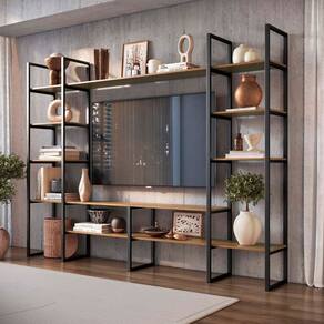 Espaço para TV, livros, plantas, objetos decorativos e muito mais