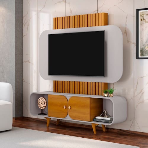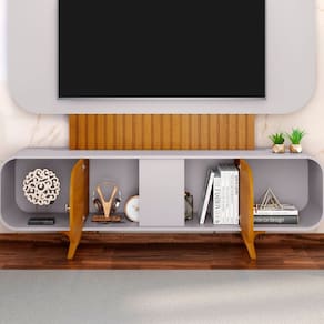 Transforme sua sala em um ambiente moderno e sofisticado com o Home Embau. Produzido em MDF/MDP de alta durabilidade, ele oferece resistência e qualidade para valorizar a decoração. Seu acabamento premium em pintura UV garante mais proteção e um visual impecável por muito mais tempo. Com um espaço amplo, suporta TVs de até 75 polegadas e conta com nichos e prateleiras bem distribuídos para acomodar eletrônicos, livros e objetos decorativos. Além disso, suas portas possuem dobradiças de alta qualidade, proporcionando um fechamento suave e seguro. Funcionalidade e estilo em um único móvel, perfeito para transformar seu ambiente com charme e organização. Produto Montado: Sim Acabamento da Porta: Pintura UV Ambiente Principal: Sala de Estar codigo_ean: 7900288219718 Complexidade da Montagem: Alta: deve ser montado por um montador especializado Cor: Off White/Naturalle Cor do Produto: Off White/Naturalle Escala de Brilho: Brilhante Escala de Brilho da Porta: Brilhante Espessura do Painel: 1,5 cm Espessura do Tampo: 15 mm Fixação na Parede: Não Ideal para TVs até (Polegadas): 75 Itens Inclusos: 1 Estante, Kit Ferragens e Manual de Montagem Linha ou Coleção: Embaú Manual de Montagem e Instalação: https://product-hub-prd.madeiramadeira.com.br/709455836/documents/8d69a019-d26d-4507-8ed4-eb9ebb5309ce02717458112717406639109133.pdf Marca: Móveis Bechara Material da Porta: MDP Material dos Pés: Madeira Maciça Material Principal: MDP Necessita Montagem: Sim Peso: 48,9 kg Possui Espelho: Não Possui iluminação: Não Possui Nichos: 03 Possui Passa Cabos: Sim Possui Pés: 04 Possui Prateleiras: Não Possui Rodízio: Não Possui Vidro: Não Recomendações de Uso, Manutenção e Limpeza: Recomenda-se limpar o produto com flanela ou pano macio seco, não utilizar produtos abrasivos, desengordurantes, álcool ou solvente. Mantê-lo em lugar livre de umidade e/ou exposição direta ao sol. Sapatas Niveladoras: Não Sistema de Montagem: Parafusos, Pregos, Cavilhas, etc Suporta Até (kg): 60 kg Suporte de TV Universal Incluso: Não Tipo de Dobradiça/Corrediça da Porta: Metálica Tipo de Madeira Maciça dos Pés: Pinus Tipo de Puxador da Porta: Externo