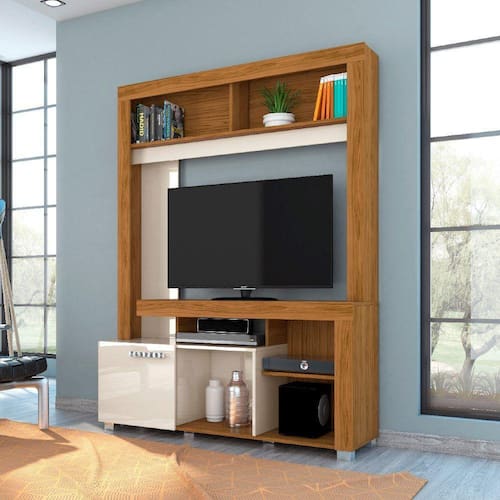 Características: Estrutura MDP 15mm Acabamento pintura UV 1 Porta deslizante Puxador de alumínio Nichos Suporta TV até 42 polegadas