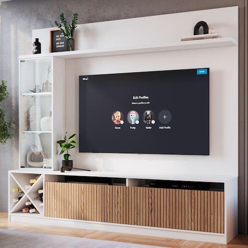 O(a) Estante para TV Até 50 Polegadas Turim 3 Portas Branco/Brise - Quiditá Móveis é produzido em MDP na escala de brilho Semi-Brilho, e possui um grau de dificuldade de montagem: Médio.