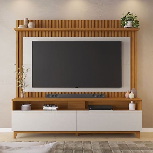O(a) Estante para TV Até 65 Polegadas 2 Portas Ripado Havana Freijó Trend/Off White Tx - Pnr Móveis é produzido em MDP na escala de brilho Fosco, e possui um grau de dificuldade de montagem: Médio.