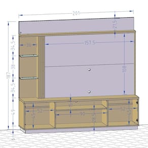- Medidas do Rack (A x L x P): 55 x 201 x 42 cm
