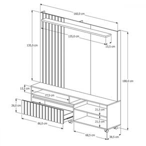 O(a) Estante para TV Até 65 Polegadas Havana 1 Gaveta Ripado Off White/Freijó - Giga Móveis é produzido em MDF e MDP na escala de brilho Semi-Brilho, e possui um grau de dificuldade de montagem: Médio.