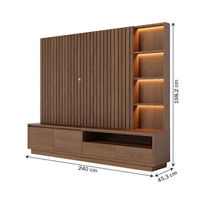 O(a) Estante para TV Até 82 Polegadas Arraial 4 Gavetas com Led Ripado Amêndoa - Pnr Móveis é produzido em MDP na escala de brilho Fosco, e possui um grau de dificuldade de montagem: Médio.