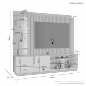 Principal centro de entretenimento da casa e também o lugar onde você recebe convidados, a sala de estar precisa estar sempre bem organizada, né? Para garantir um ambiente moderno e aconchegante, o Home Amparo acomodará sua tv e eletrônicos, além claro, de objetos que você precise guardar mas, manter sempre por perto. Um verdadeiro espetáculo de móvel. Acabamento da Porta: Pintura UV Acabamento da Prateleira: Vidro Acompanha Lâmpada: 01 Ambiente Principal: Sala de Estar Complexidade da Montagem: Alta: deve ser montado por um montador especializado Cor: Cinamomo/Off Cor do Produto: Cinamomo/Off Cor Interna: OFF Escala de Brilho: Fosco Escala de Brilho da Porta: Fosco Escala de Brilho da Prateleira: Brilhante Ideal para TVs até (Polegadas): 60 Itens Inclusos: MANUAL, KIT FERRAGENS E PRODUTO Manual de Montagem e Instalação: https://product-hub-prd.madeiramadeira.com.br/890199/documents/77e840fd-5b38-4207-be82-0dd4233632e6roref10100jcmpassoapassof4.pdf Material da Porta: MDP Material da Prateleira: Vidro Material Principal: MDF/MDP Necessita Montagem: Sim Peso: 70,6 kg Peso Máximo por Prateleira: 2 kg Possui Espelho: Não Possui iluminação: Sim Possui Nichos: 03 Possui Pés: Não Possui Portas: 02 Possui Prateleiras: 02 Recomendações de Uso, Manutenção e Limpeza: Pano levemente úmido Sistema de Montagem: Parafusos e Minifix Suporta Até (kg): 70 kg Suporte de TV Universal Incluso: Sim Tipo de Puxador da Porta: Embutido