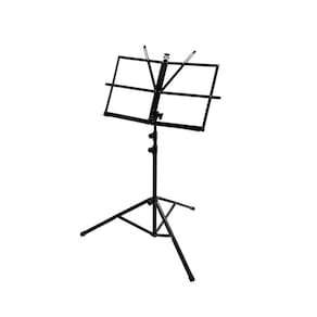 Esta estante é leve e prática para transportar, montar e desmontar, tornando-se ideal para músicos em movimento. Possui dois apoiadores de folhas, suporte desmontável e regulagem de ângulo, oferecendo versatilidade no uso. Com um acabamento elegante em preto epóxi, partes em ABS preto e tubos reforçados com conexões de plástico, garante durabilidade e resistência.