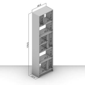 Espessura da Estrutura 12 mm Necessita de Montagem Sim Possui Sapatas? Sim Possui Prateleiras? Sim Material da Estrutura MDP Como os Móveis Chegarão na Minha Casa Desmontado em caixas, acompanhado de todas as peças, ferragens e manuais para montagem. Grau de Dificuldade da Montagem Médio Sistema de Montagem Parafusos, cavilhas e Minifix. Observação Objetos decorativos que aparecem nas imagens, não acompanham o produto. Recomendação de Manutenção Utilizar pano levemente umedecido, seguido de pano seco. Não utilizar quaisquer produtos abrasivos. Indicação de Uso Sala de Estar e Escritório Garantia (dias) 90 Escala de Brilho Fosco Quantidade de Pés/Sapatas 4 Revestimento /Acabamento Finish Foil Tamanho Unico Grande Pequeno Grande Quantidade de Prateleiras 5 Peso Suportado nas Prateleiras: 3 Kg Linha ou Coleção Piratini Peso 19,500 kg Largura 48,00 cm Altura 178,00 cm Comprimento 25,50 cm