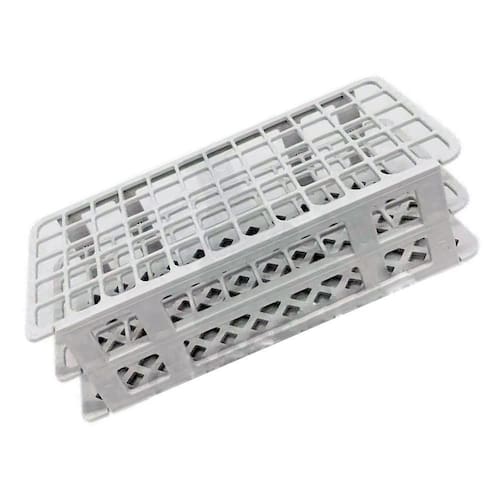 - Estantes tipo grade. - Fabricadas em polipropileno PP autoclavável a 121ºC por 15 minutos. - Permite o uso em conjunto com banho-maria, estufas e freezer. - Possui 60 furos - Para tubo com diâmetro de aproximadamente 16 mm - Cor Branco Ean: 7898599570751