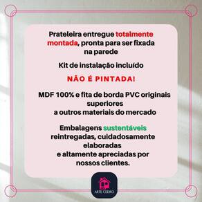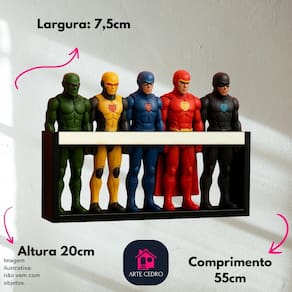 Estante porta bonecas nicho parede organizador coleção brinquedos prateleira quarto infantil mdf 55cm Ripa: branca Deixe uma criança, ou um colecionador feliz ao adquirir uma prateleira feita pensada nas medidas de bonecos estilo super herói e barbie preciso montar É complicado de instalar Não se preocupe as prateleiras já vão montadas e prontas para instalar. Enviamos com buchas e parafusos, então é só fixar na parede. Simples, rápido e sem dor de cabeça. será que é resistente mesmo Sim fabricadas em mdf 15mm com acabamento melamínico, nossas prateleiras suportam até 8 kg cada com tranquilidade. É qualidade testada e aprovada por centenas de clientes. e se não combinar com meu ambiente A cor amadeirada e o design minimalista combinam com qualquer estilo de decoração - do clássico ao moderno. Ideal para quarto, brinquedoteca , sala, creche, escola... E até quarto de bebê. vai valer a pena mesmo Você recebe 1 prateleira pronta para uso, com design artesanal, duráveis e versátil. Use para organizar e decorar com estilo, sem gastar muito e sem depender de móveis planejados. é confiável comprar da arte cedro Sim produzimos de forma artesanal e com atenção aos detalhes. Nosso compromisso é com a sua satisfação e com o charme da sua casa. A prova disso A fidelidade dos nossos clientes e os elogios que recebemos todos os dias. Detalhe: não é pintada mdf . Medidas: 55 cm de comprimento 7,5 cm de profundidade 20 cm de altura O que vem: 1 prateleira de 55cm. Faça seu pedido agora e transforme seu espaço com praticidade e estilo Arte cedro: o detalhe na sua decoração.