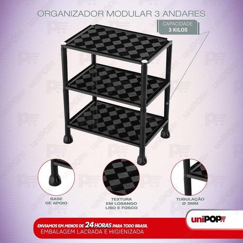o cesto modular quadrado uninjet 3 andares um produto coringa, pode ser utilizado em todos os ambientes, na cozinha ele mantm os seus utenslios organizados ao alcance das mos e dos olhos. Em outros ambientes como lavanderia e banheiro, serve para guardar produtos de limpeza e higiene, deixando o ambiente em ordem. A sua cozinha e o seu lar merecem acessrios e produtos prticos para facilitar o dia a dia. A altura entre as prateleiras em torno de 20cm e suporta at 3 kg. Medidas do produto montado: altura: 57 cm largura: 31,5 cm comprimento: 47 cm