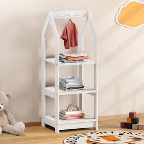 O Mini Closet Casinha Organizador Infantil Madeira Sally é a solução ideal para quem busca praticidade e estética no quarto infantil. Feito em madeira maciça, com estrutura firme e formato lúdico, ele oferece três prateleiras para roupas, brinquedos ou livros e um cabideiro com ganchos para pendurar as peças preferidas da criança.