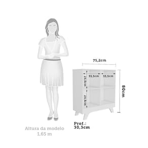 Estante Retrô com 4 Nichos - Móveis Peroba A Estante Retrô com 4 Nichos é ideal para complementar a organização e a decoração do quarto infantil. Produzida em MDF com pintura UV atóxica, oferece segurança e durabilidade. Possui quatro nichos espaçosos que suportam até 5kg cada, perfeitos para guardar livros, brinquedos e objetos decorativos. Com sistema antitombamento e pés em MDF, garante estabilidade e um toque retrô que valoriza o ambiente. Suas dimensões compactas facilitam a adaptação a diferentes espaços.