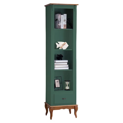 Transforme seu ambiente com a sofisticação atemporal da Estante de Madeira 60101. Produzida em Madeira Maciça para tons amadeirado em verniz e MDF nos tons coloridos com acabamento laca, esta peça combina durabilidade e charme clássico. Seu design elegante inclui 1 gaveta espaçosa equipadas com corrediças metálicas telescópicas, garantindo um deslizamento suave e resistência ao uso diário e três prateleiras para exibir seus itens decorativos.