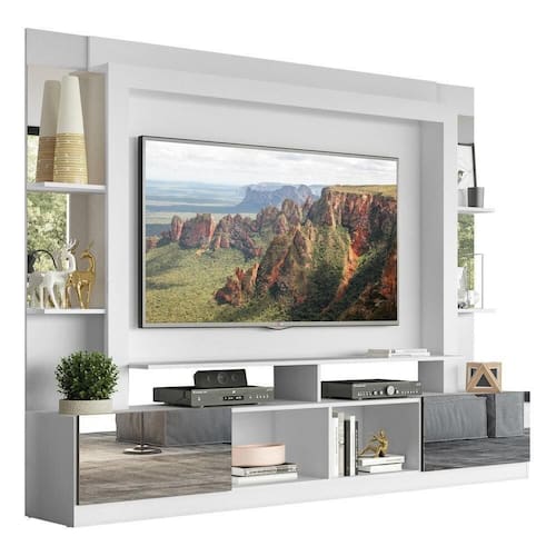 Estante Tv 65" Com Espelho Oslo Multimóveis V3389 Branca/Tenerife Branco/Tenerife - Blush