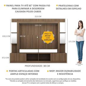 Dimensões do produto montado: Altura: 171cm | Largura: 213cm | Profundidade: 38cm Painel - Altura: 98cm | Largura: 150cm *Devido as variações de tamanho dos televisores no mercado, sugerimos que verifique as medidas da sua TV e compare com o painel antes de efetuar a compra. *Você pode consultar as medidas internas na imagem técnica do produto.