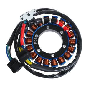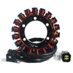 Marca : Wortech (Indústria Brasileira) Fabricação ExclusivaCódigo: W-ES/407 Instalação: Não é necessário adaptações -Aplicação:DR 650 SE (1996-2011)Freewind XF 650 (1997-2002)Características do produto: -Fio de cobre esmaltado de 200° -Resina : isolamento a base de cerâmica resistente a 1000° -Chicote : Cabos de silicone resistente a 200°-Conector: Em Nylon de alta qualidade -Rebobinamento dentro dos padrões do fabricante originalDimensões da carcaça:-Diâmetro Externo: 115 mm-Diâmetro Interno: 54 mm-Espessura da parte de fixação: 18 mmConexões: -01 > Conector 3 vias com 3 cabos amarelos-01 > Conector 4 vias com 1 cabo verde, 1 cabo azul, 1 cabo branco e 1 cabo pretoItens Inclusos:-01 > Estator-01 > Certificado de garantia-Garantia total de 12 meses