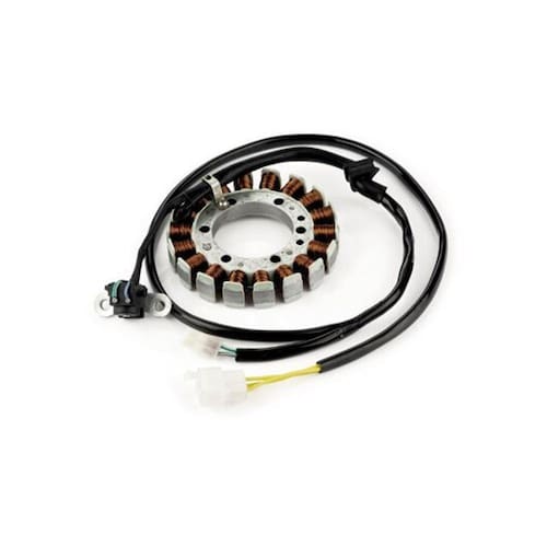 O estator tem a função de gerar energia para o sistema de carga de bateria e iluminação (painel, farol, lanterna traseira, piscas dianteiros e traseiros). Acompanha bobina de pulso.