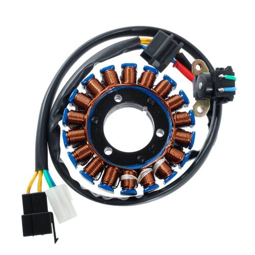 Marca : Wortech (Indústria Brasileira) Fabricação ExclusivaInstalação: Não é necessário adaptações Código: W-ES/410-Aplicação:Suzuki Intruder 125 (2002-2011)Suzuki Katana 125 (1996-2002)Suzuki Yes 125 (2005-2011) Sundown STX 200Características do produto: -Fio de cobre esmaltado de 200° -Resina : isolamento a base de cerâmica resistente a 1000° -Chicote : Cabos de silicone resistente a 200°-Conector: Em Nylon de alta qualidade -Rebobinamento dentro dos padrões do fabricante originalDimensões da carcaça: -Diâmetro Externo: 93 mm-Diâmetro Interno: 35 mm-Espessura da parte de fixação: 14 mmConexões:-01 > Conector 3 vias com 3 cabos amarelos-01 > Conector 2 vias com 1 cabo verde, 1 cabo azulItens Inclusos:-01 > Estator-01 > Certificado de garantia-Garantia total de 12 meses