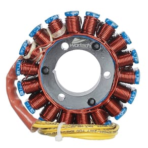 Marca : Wortech (Indústria Brasileira) Fabricação Exclusiva Instalação: Produto somente com os cabos, será necessário utilizar borracha, conectores e pulsador da peça do cliente. Código: W-ES/465 Características do produto: -Fio de cobre esmaltado de 200° -Resina : isolamento a base de cerâmica resistente a 1000° -Chicote : Cabos de silicone resistente a 200°-Rebobinamento dentro dos padrões do fabricante originalDimensões da carcaça: -Diâmetro Externo: 93,5 mm-Diâmetro Interno: 35 mm-Espessura da parte de fixação: 21,5 mmItens Inclusos: -01 > Estator-01 > Certificado de garantiaGarantia total de 12 meses