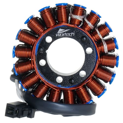 Marca : Wortech (Indústria Brasileira) Fabricação ExclusivaInstalação: Não é necessário adaptações Código: W-ES/448-Aplicação: Srad 750 Gsx-r (2005-2006)Características do produto: -Fio de cobre esmaltado de 200° -Resina : isolamento a base de cerâmica resistente a 1000° -Chicote : Cabos de silicone resistente a 200°-Conector: Em Nylon de alta qualidade -Rebobinamento dentro dos padrões do fabricante originalDimensões da carcaça: -Diâmetro Externo: 107 mm-Diâmetro Interno: 38 mm-Espessura da parte de fixação: 22 mmConexões: -01 > Conector 3 vias com 3 cabos brancos Itens Inclusos: -01 > Estator-01 > Certificado de garantia- Garantia total de 12 meses