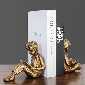 Material: resina Tamanho: 7,2 x 16,5 x 14,8 cm Peso: 1470 g Charming Reading Figures — Apresenta um par de esculturas detalhadas representando um menino e uma menina absortos na leitura, adicionando apelo intelectual e nostálgico a qualquer espaço. Suportes para livros decorativos funcionais — Essas estátuas funcionam como suportes para livros resistentes, ajudando a organizar livros e servindo como ornamentos artísticos. Design vintage europeu — O acabamento clássico em tom de bronze evoca o charme do velho mundo, perfeito para estilos de interiores tradicionais e elegantes. Material de resina premium — Feito de resina de alta qualidade com efeito antigo aplicado à mão, durável e resistente a lascas ou desbotamento. Ideal para vários espaços — Ótimo complemento para bibliotecas domésticas, escritórios, salas de estudo ou estantes de livros como decoração e utilidade.
