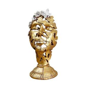 Material: Resina Tamanho: 12x10,5 x 27 cm Peso: 630 g Design elegante de rosto oco — Esta escultura apresenta um rosto humano fragmentado com recortes intrincados, combinando surrealismo e simbolismo para criar uma figura visualmente atraente. Acentos florais e borboletas — Flores prateadas e uma borboleta adicionam contraste artístico ao corpo dourado, realçando a estética geral e a profundidade simbólica da peça. Construção em resina premium — Feito de resina durável com acabamento metálico texturizado, este ornamento é resistente e ideal para ambientes interiores modernos e clássicos. Ideal para exibição e estilo — Medindo 12 x 10,5 x 27 cm e pesando 630 g, é adequado para desktops, aparadores, vitrines ou como suporte para fotografia criativa. Decoração artística versátil — Seja usada em decoração de casa, sessões de fotos ou estúdios de arte, esta escultura adiciona um elemento único e instigante ao seu espaço.
