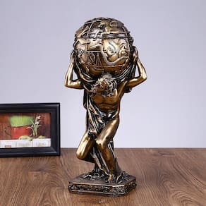 Material: Resina Tamanho: 15,5 x 11 x 33 cm Peso: 1000 g Design de figura grega mítica — Retrata o Atlas Titã da mitologia grega, carregando o globo celestial com força e graça, simbolizando resistência e poder em forma de arte. Acabamento antigo em resina de bronze — Feita de resina premium com acabamento clássico em bronze, esta figura escultórica combina elegância histórica com artesanato artístico. Tamanho de tela impressionante — Com 33 cm de altura, esta peça marcante é adequada para mesas, consoles de entrada e nichos de exibição em restaurantes, cafés ou interiores residenciais. Detalhamento intrincado do globo — O globo apresenta padrões celestiais e do zodíaco, aprimorando a profundidade visual e o apelo temático de contar histórias da estátua. Peça de decoração versátil — ideal como um ornamento marcante para espaços artísticos, lobbies de escritórios ou balcões de bar, adicionando um toque de drama mitológico e impacto visual.