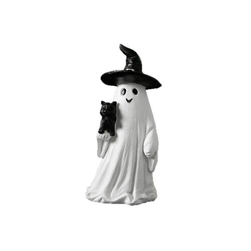 Material: Resina Tamanho: 8 cm × 7 cm × 17 cm Peso: 220 g ['Charming Ghost and Cat Design — Esta escultura de resina apresenta um fantasma branco sorridente usando um chapéu de bruxa preto e segurando um gatinho, adicionando uma atmosfera extravagante de Halloween à sua casa ou jardim. ', 'Material de resina durável — Feita de resina de qualidade premium, esta estátua de jardim é à prova d'água, resistente às intempéries e perfeita para decorações de Halloween internas e externas. ', 'Perfect Garden Accent — Coloque essa figura fantasma em seu pátio, gramado, quintal ou entrada para criar uma atmosfera sazonal divertida e assustadora que encanta crianças e adultos. ', 'Detalhes artesanais — As texturas cuidadosamente pintadas e os detalhes finos do manto e do chapéu do fantasma dão vida à escultura, mostrando um artesanato excepcional. ', 'Tamanho decorativo compacto — Medindo 8 × 7 × 17 cm e pesando 220 g, esta figura cabe facilmente em mesas, prateleiras ou jardins para uma exibição fofa e atraente.']