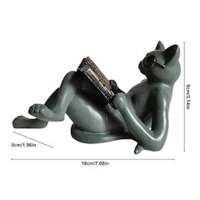 Especificação: Material: Tamanho: 18* 5* 8cm Embalagem: cartão+isopor Peso: 300g Lista de pacotes: 1 * enfeites de gato - 1. Ornamento literário de resina para gatos: Nossa estátua foi projetada como um gato de pernas cruzadas sob a luz do sol, usando óculos e lendo um livro. Parece erudito e preguiçoso. - 2. Material: Nossa adorável escultura de gato é feita de material de resina e mede 7,08 “L x 1,96" L x 3,14" H. Este é o tamanho perfeito para aprimorar seu escritório doméstico, adicionar estatuetas colecionáveis e combinar com outras estátuas decorativas. - 3. Acabamento requintado: esta estátua realista é uma forma de embelezar seu espaço e é uma decoração perfeita para hotéis, escritórios e decorações domésticas de alto padrão. - 4. Estátua decorativa: decoração para sala de estar, sala de estudo, jardim, escritório ou aula de arte, galeria, etc. - 5. Presentes requintados: esta estátua é um presente perfeito para qualquer ocasião, especialmente para quem adora gatos em sua vida.