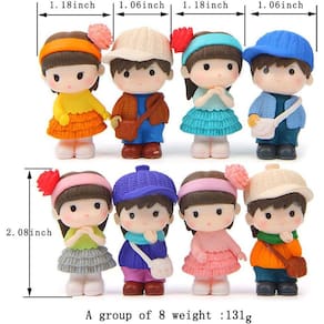 Conjunto de 8 estatuetas de brinquedos para meninos e meninas diferentes, parece engraçado; suave e bonito. Feito de plástico PVC de alta qualidade. Ótimo tamanho de presente: 1,5-2 polegadas (4-5 cm) As cores vivas devem ser o ornamento perfeito para sua adorável casa. Ótima ideia de presente de Natal para sua família e amigos. Funcional e também decorativo. Conjunto de mini bonecos para crianças, ótimo para decorações de bolo de aniversário, topper de bolo. Decoração de plantas.