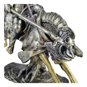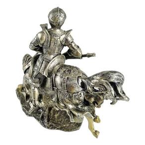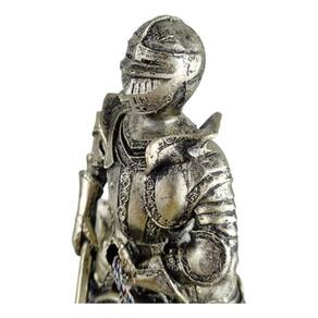Estatua De Resina Cavaleiro Medieval A Estátua de Resina de um Cavaleiro Medieval é uma peça impressionante que retrata a nobreza e a coragem dos guerreiros da Idade Média. Esculpida com detalhes meticulosos, esta estátua apresenta um cavaleiro montado em seu cavalo, vestindo uma armadura ricamente detalhada, adornada com delicados relevos. O cavaleiro segura uma lança com destreza, preparado para o combate. Feita de resina de alta qualidade, esta estátua é uma adição imponente para qualquer coleção de decoração medieval.