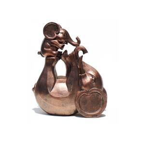 Linda escultura de um elefante com seu filhote. Ambos elefantes estão unidos, não é possível separar.