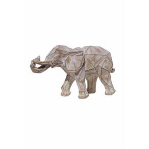 Linda estátua de elefante, com design geométrico em alto-relevo. Todo feito em Resina. Com cor semelhante a madeira com detalhes brancos, não assimétrico.