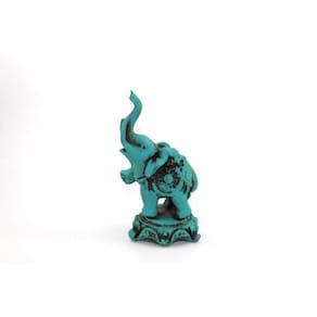 Estátua Elefante Picadeiro cor Azul Tiffany Resina 15 cm