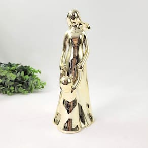 Estátua Mãe Com Bebê Dourada Decorativa 22x9x8cm Presente
