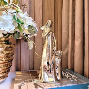 Feita em cerâmica e banho cromado. Detalhadamente esculpida à mão para capturar a emoção e o vínculo entre mãe e filho. Tamanho perfeito para exibir em prateleiras, mesas ou aparadores. Um presente memorável para celebrar o Dia das Mães ou qualquer ocasião especial.