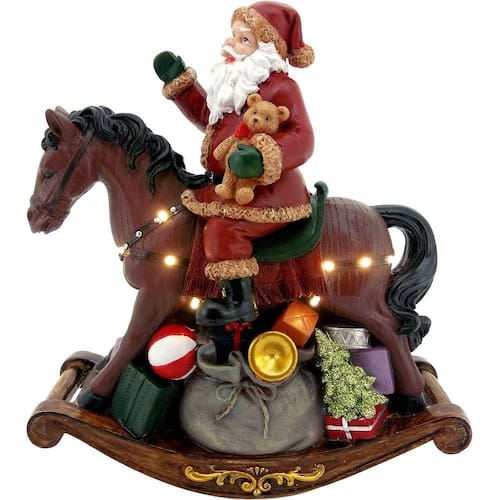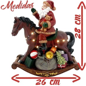 Estátua Natalina Musical Iluminada Papai Noel Pônei 28cm -