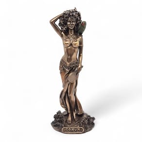 A Escultura Deusa do Amor Oshun em Resina é uma peça que exala beleza e espiritualidade. Representando Oshun, a deusa do amor e da fertilidade na mitologia iorubá, esta escultura é ideal para adicionar um toque de graça e espiritualidade ao seu ambiente. "Mãe dos Rios" é um título dado a Oshun, a orixá associada às águas doces, como rios e cachoeiras.