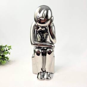 Estátua Pensamento Pessoa Banqueta 27cm Decoração Prateada
