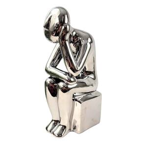Estátua Pensamento Pessoa Banqueta 27Cm Decoração Prateada