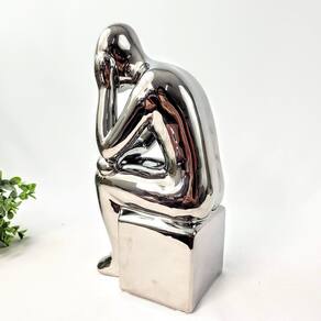 Estátua Pensamento Pessoa Banqueta 27cm Decoração Prateada