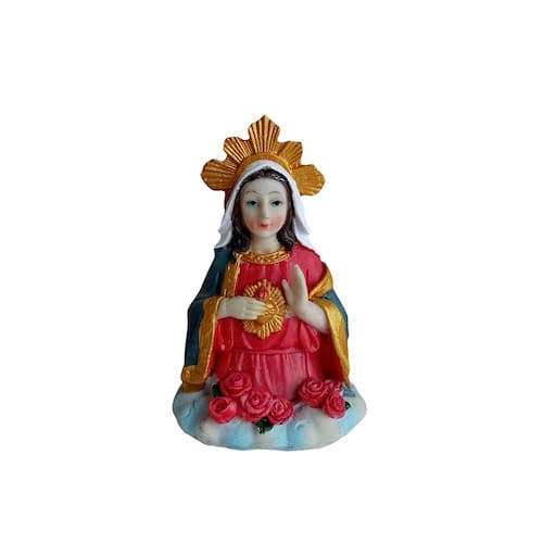 Material: Resina Tamanho do produto: 8,5 cm/3,35 polegadas* 6,5 cm/2,56 polegadas* 12,5 cm/4,92 polegadas Peso do produto: 185 g Design do Sagrado Coração — Apresenta Mary com coroa dourada, roupão vermelho detalhado e motivo de coração, simbolizando fé e devoção em um estilo tradicional renascentista. Artesanato em resina — Feito de resina durável com detalhes finos pintados à mão, garantindo cores vibrantes e qualidade duradoura. Tamanho compacto — mede aproximadamente 12,5 cm/4,92 polegadas de altura, adequado para exibição em prateleiras, mesas, altares domésticos ou cantos espirituais. Ornamento elegante — adiciona um toque decorativo significativo com rosas na base e uma expressão facial intrincada, aprimorando interiores religiosos ou clássicos. Uso versátil — Perfeito como escultura para espaços espirituais, salas de meditação ou como peça central ornamental para decoração de casa.