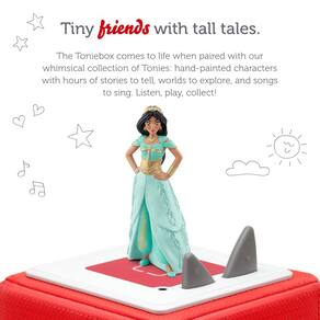 Este Tonie convida você a experimentar a jornada ousada de Jasmine do ponto de vista dela, apresentando sua história icônica e canções amadas. Jasmine é incrivelmente independente e forte. Ela não tem medo de falar o que pensa, não importa quem ela esteja enfrentando, e não hesitará em defender o que é certo. A princesa de Agrabah, Jasmine é extremamente compassiva e atenciosa com as pessoas em seu reino, sua família e seus amigos — especialmente sua amiga mais leal, seu tigre Rajah. Ela sabe que não deveria deixar ninguém decidir seu futuro e, em sua jornada ousada além das paredes do palácio, Jasmine sai de sua zona de conforto, criando um mundo totalmente novo e uma nova era para Agrabah. - Embarque em sua jornada ousada além das paredes do palácio enquanto Jasmine sai de sua zona de conforto para criar um mundo totalmente novo e um futuro mais brilhante para Agrabah. - Ensina as crianças sobre perseverança, bondade e coragem. - Inclui personagem de brinquedo Jasmine com 2 músicas, 1 história e tempo total de execução de aproximadamente 48 minutos. Idade recomendada: 6+, idioma: inglês. Narrado por Emily O'Brien. Com vozes autênticos da Disney Aladdin: filme de ação ao vivo, incluindo Mena Massoud, Naomi Scott, Marwan Kenzari, David Negahben e Nasim Pedrad. - Tracklist: História: 1) Disney Aladdin: Jasmine. Músicas: 2) Um mundo totalmente novo, 3) Sem palavras (completo). - Requer Toniebox Audio Player para reproduzir áudio; vendido separadamente.