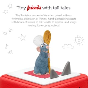 Em um dos melhores restaurantes de Paris, Remy, um jovem rato determinado, sonha em se tornar um renomado chef francês. Dividido entre os desejos de sua família e seu verdadeiro chamado, Remy e seu amigo, Linguini colocaram em movimento uma hilária cadeia de eventos que vira a Cidade das Luzes de cabeça para baixo. - Em um dos melhores restaurantes de Paris, Remy, um jovem rato determinado, sonha em se tornar um renomado chef francês. Dividido entre os desejos de sua família e seu verdadeiro chamado, Remy e seu amigo, Linguini colocaram em movimento uma hilária cadeia de eventos que vira a Cidade das Luzes de cabeça para baixo. - Ensina as crianças a seguir seus sonhos, cozinhar e trabalhar em equipe. - Inclui o personagem de brinquedo Ratatouille da Disney/Pixar com 1 história e tempo total de execução de aproximadamente 47 minutos. Faixa etária recomendada: 6+, Idioma: inglês. - Tracklist: Ratatouille Storyteller - Requer Toniebox Audio Player para reproduzir áudio; vendido separadamente.
