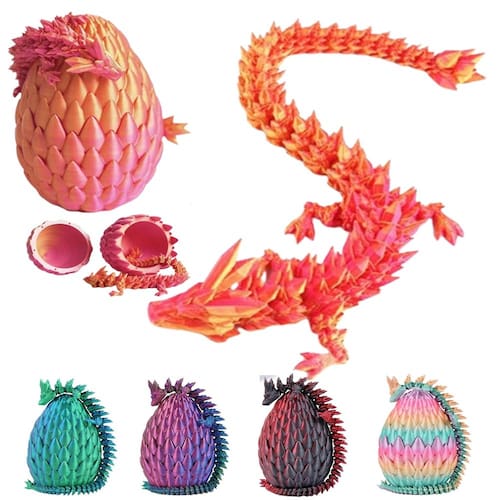Dragão impresso em 3D, ovos de dragão com dragão dentro, dragão de cristal, dragão articulado impresso em 3D, novo dragão de cristal totalmente articulado com ovo de dragão, presentes de Páscoa - 🐉 Dragão impresso em 3D: descubra a magia interior, crie um dragão de cristal mágico com nosso ovo impresso em 3D de 3,94"! Experimente a emoção de revelar o mistério escondido por dentro. - 🐉 Design realista, sensação autêntica: os detalhes intrincados do ovo de dragão e do dragão impresso em 3D proporcionam uma experiência autêntica para colecionadores e entusiastas. Com dobradiças robustas conectando a cabeça, o tronco, os membros e os pés, você pode posicionar o dragão em várias posições para obter a máxima flexibilidade de exibição. - 🐉 Horas de diversão sem fim: este não é apenas um ovo de dragão visualmente deslumbrante, é também uma fonte de entretenimento sem fim! Passe horas interagindo com seu dragão 3D, girando-o, girando-o e posicionando-o de maneiras diferentes. Seja voando pelo ar ou empoleirado majestosamente em uma prateleira, as possibilidades são realmente infinitas. - 🐉 Material de PLA seguro e ecológico: tenha certeza de que nosso dragão impresso em 3D é feito de PLA, um material que é seguro para alimentos e ecológico. É perfeito para exibição em sua casa ou escritório, combinando segurança com estilo. - 🐉 Estatueta de dragão aprimorada com gemas: nossa estatueta de dragão chinês personifica o espírito de um brinquedo criativo e moderno, oferecendo um toque refrescante aos itens colecionáveis tradicionais. Também serve como um presente único e significativo para seus entes queridos, transmitindo suas bênçãos e carinho de uma forma verdadeiramente especial. Surpreenda e encante seus amigos e familiares com este presente único.