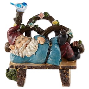 - Um dia ensolarado, um banco charmoso e um pássaro azul brilhante são tudo o que esse adorável gnomo precisa para tirar uma boa soneca. O painel solar absorve o sol durante o dia e faz com que o pássaro azul se ilumine à noite.